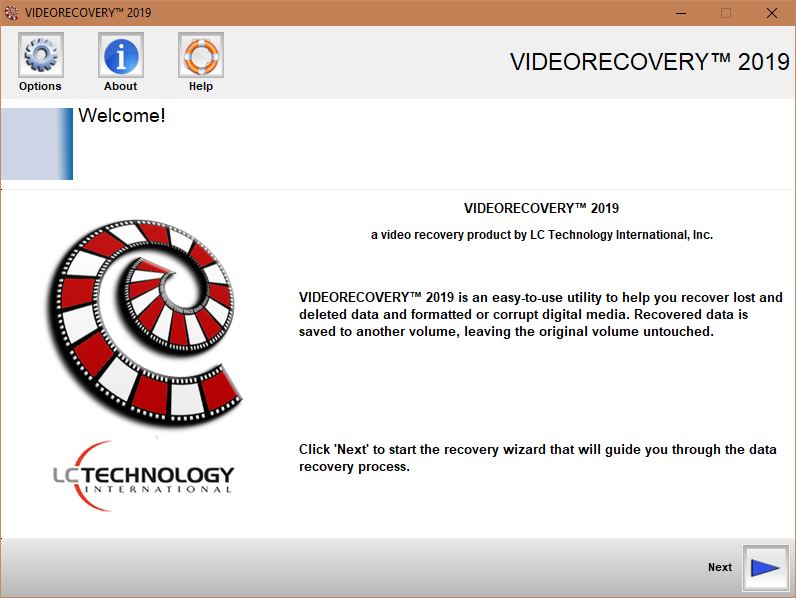 | 从这里开始:运行VIDEORECOVERY™,并单击下一步继续。 |