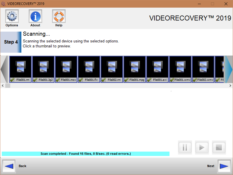为了获得最佳效果,建议在默认模式下运行VIDEORECOVERY™,直到你完全熟悉所有的选项。